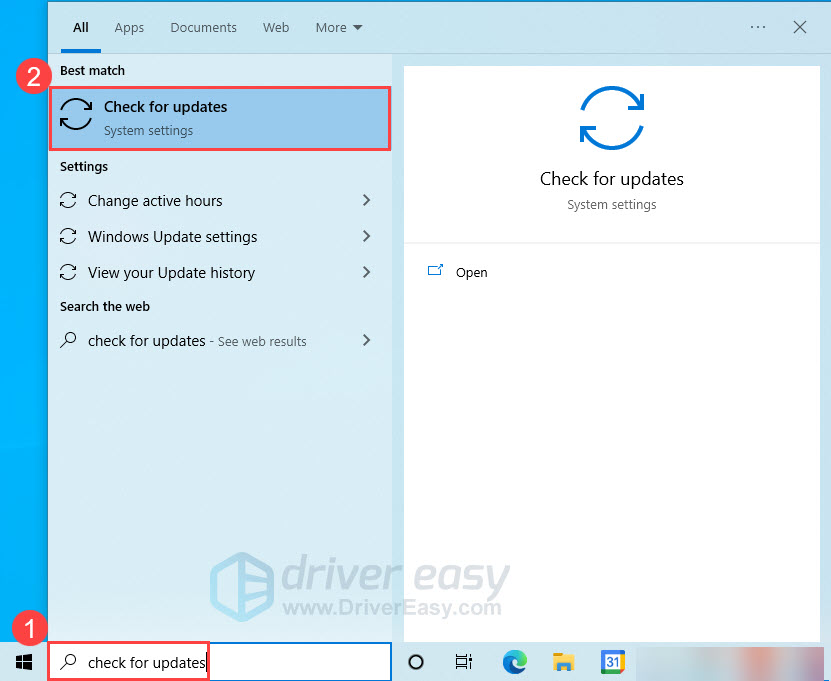 - In the search field on your taskbar, type check for updates. Then select it from the search results.