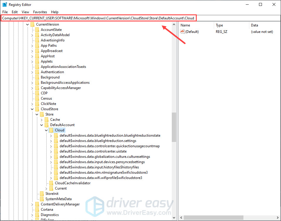 Computer\HKEY_CURRENT_USER\SOFTWARE\Microsoft\Windows\CurrentVersion\CloudStore\Store\DefaultAccount\Cloud