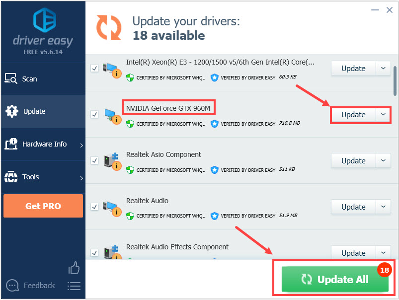 Or click Update All to automatically download and install the correct version of all the drivers that are missing or out of date on your system (this requires the Pro version – you’ll be prompted to upgrade when you click Update All).