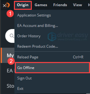 - Launch Origin. Then click the Origin menu and select Go Offline.