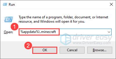 - On your keyboard, press the Windows logo key and R together to invoke the Run box, type %appdata%.minecraft and click OK.