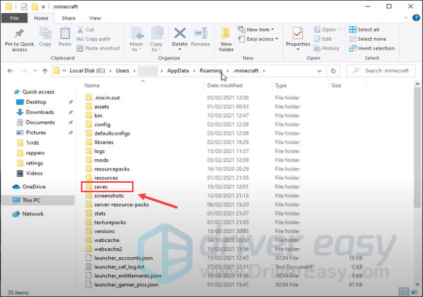 - Copy the saves folder and paste it to your desktop, as it contains your Minecraft world.