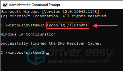 - In the pop-up window, type in ipconfig /flushdns. Press Enter.