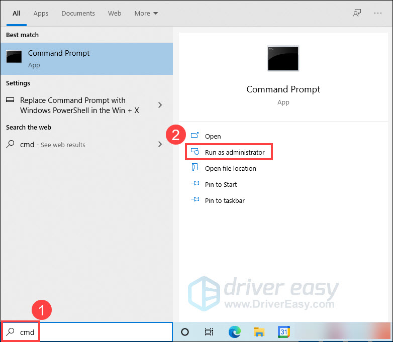 - Next you need to purge the DNS cache for the changes to apply. On your keyboard, press the Windows logo key and type cmd. Select Run as administrator.