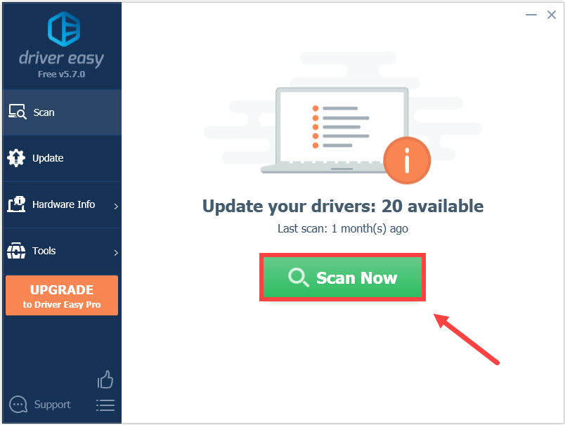 - Run Driver Easy and click the Scan Now button. Driver Easy will then scan your computer and detect any problem drivers.