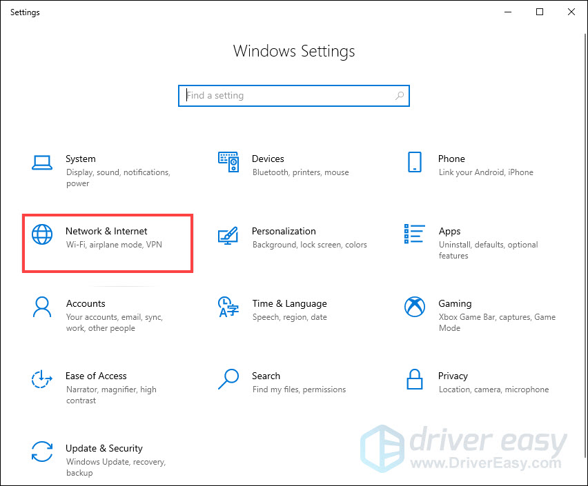 - On your keyboard, press the Windows logo key and I together to open Windows Settings. Then click Network & Internet.