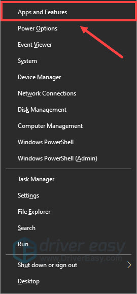 - On your keyboard, press the Windows logo key and X together to open the Quick Link menu. Then select Apps and Features.