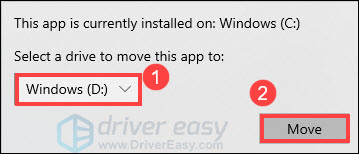 - In the pop-up window, select a new drive from the drop-down menu, then click Move again.