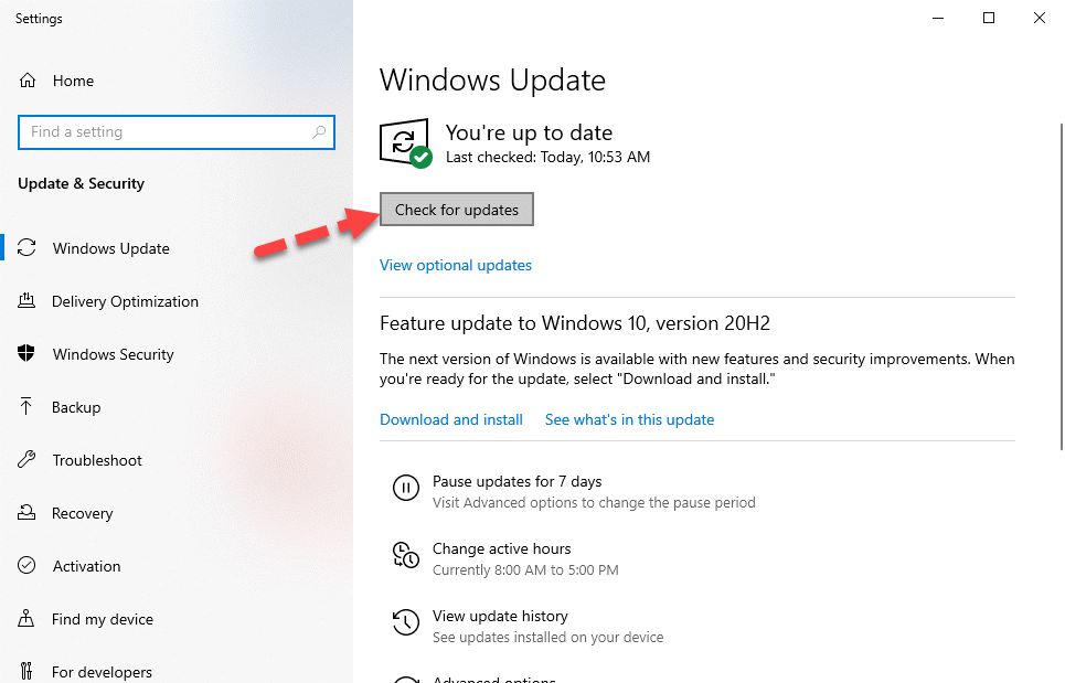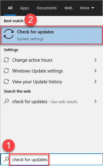 - On your keyboard, hit the Windows key, then type check for updates, then click Check for updates.
