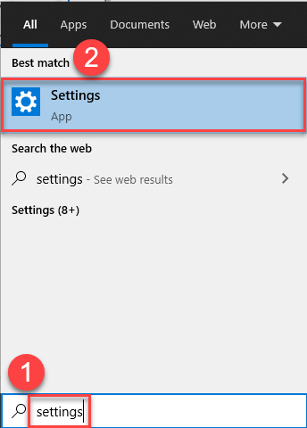 - On your keyboard, press the Windows logo key and type settings, then click on Settings as it pops up as a result.