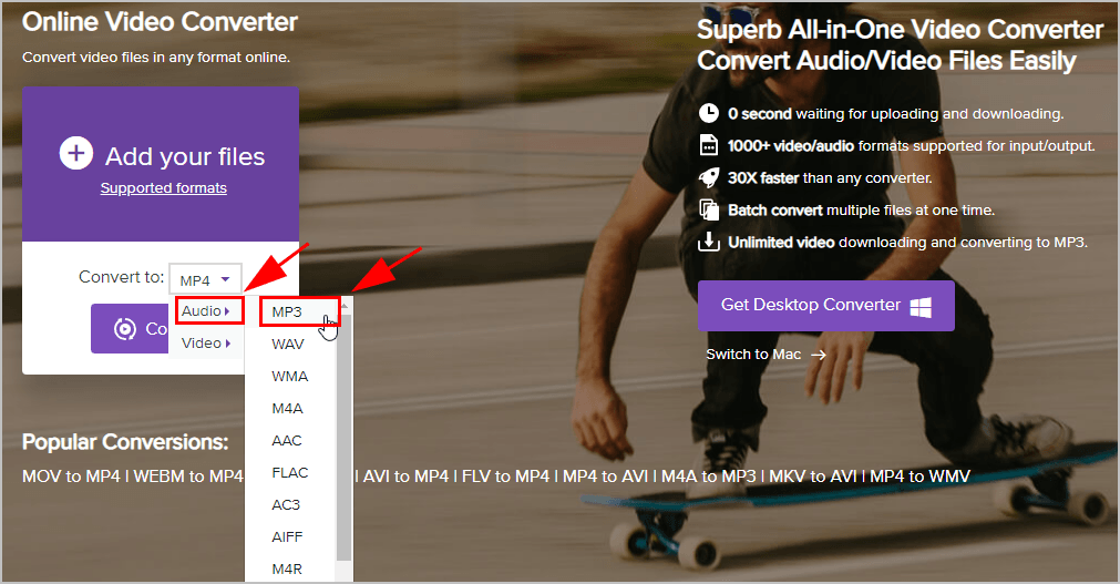 There are many online video converters that help you with that. Just search on the Internet and choose the online video converter you prefer, then follow the provided tutorial to finish it.