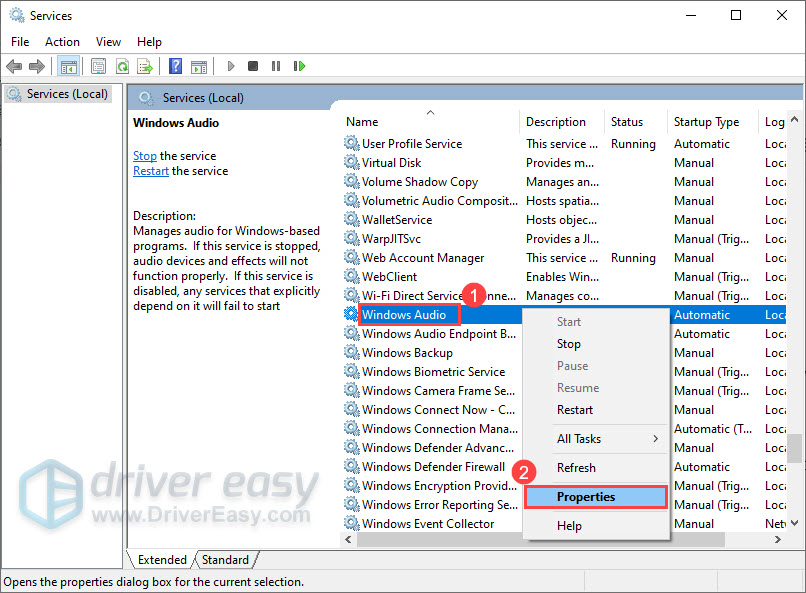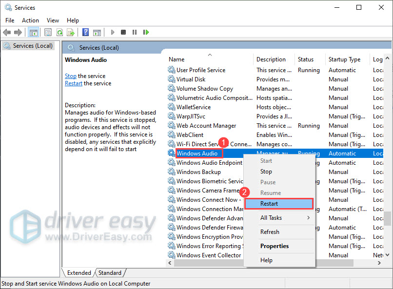 - Restart Windows Audio Service