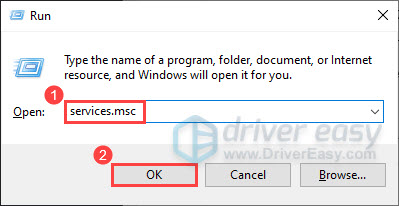 - On your keyboard, press the Windows logo key and R at the same time to invoke the Run dialog box. Then type services.msc and click OK.