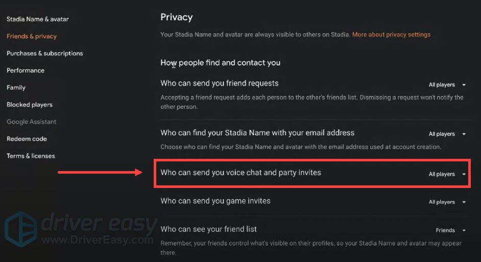 - Check your Stadia or Windows 10 Privacy Settings