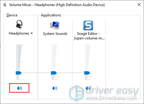 - You’ll see a set of volume controls for your devices. Make sure none of them are muted.