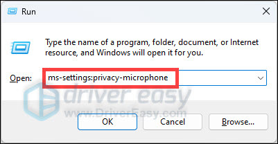 - Type ms-settings:privacy-microphone and hit Enter.