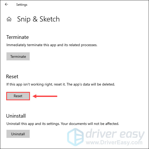 Fix 3: Reset Snipping Tool or Snip & Sketch