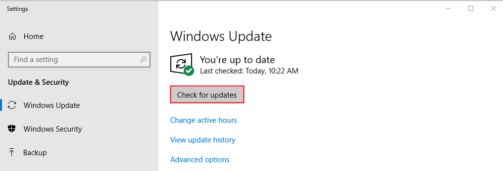 - On your keyboard, press the Windows logo key and type update. In the list of results, click Check for updates to open Windows Update window.