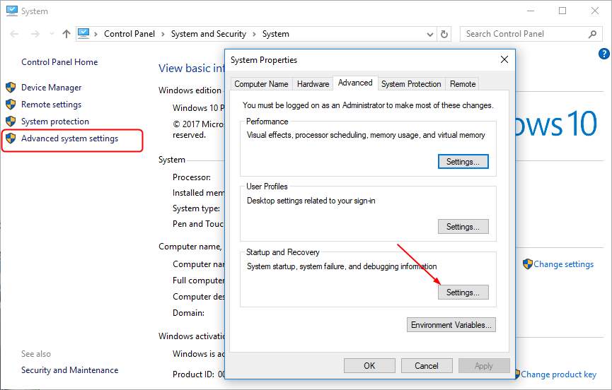 The automatic restart feature allows Windows to restart automatically when errors occur without any error messages or notifications, which can be helpful to further troubleshooting. So you can first disable this feature to see if there are any helpful crash logs. To do so:
