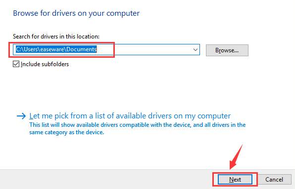 6) Browse to locate the chipset driver which you have saved, then click the Next button to move on.