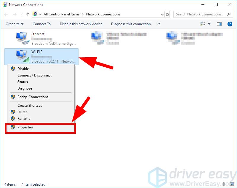 2) Right-click your Wireless/WiFi network adapter, then click Properties.