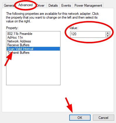 You can also increase your Scan Valid Interval to fix your wireless network issue.