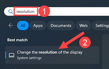 - In the Windows search bar, type resolution and select Change the resolution for the display.