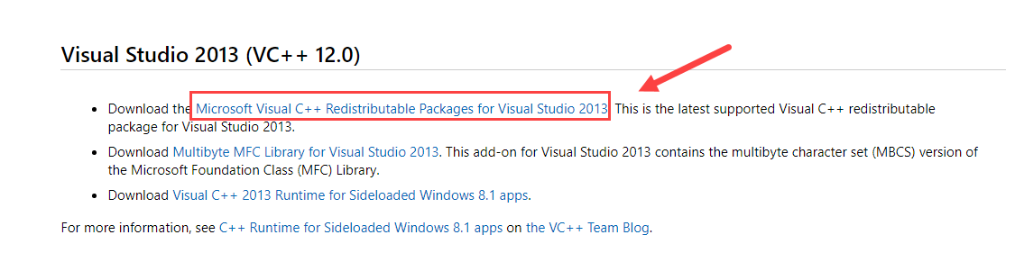 - Also download the Microsoft Visual C++ 2013 (both the x86 and x64) and complete the installation/repair.