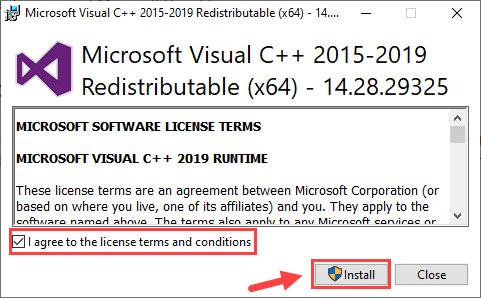 - Run the downloaded files, and click Install (if you have already installed one, click Repair).