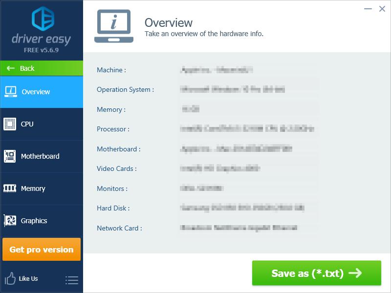 You can also use Driver Easy to check your computer hardware. Driver Easy is a powerful driver updater program, and you can use it to view your hardware information easily.